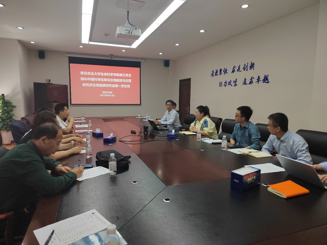 张海波书记、杨松副院长各自详细介绍了单位党建总体情况,青岛能源所生物能源研究室第一党支部组织委员宋乡飞、生科学院第三党支部书记王光远分别介绍了支部党建和科研基本情况,双方就所校联合共建进行了沟通,并在科研合作、研究生联合培养、社会服务等多领域合作达成了共识。