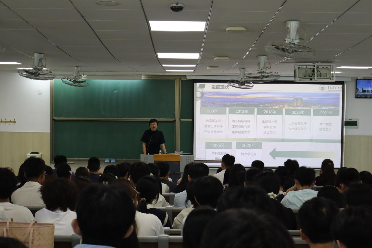为帮助新生快速熟悉学院环境、了解专业概况,以全新的状态投入到大学生活中,9月7日,yl6809永利皇宫于平度校区博学楼A113举行了2025级新生见面会。院长杨松、党委副书记刘妍玲、副院长谭玲玲、团委书记王洋、专业负责人樊亚琴、全体辅导员以及2025级新生班班主任出席了新生见面会,会议由刘妍玲主持。