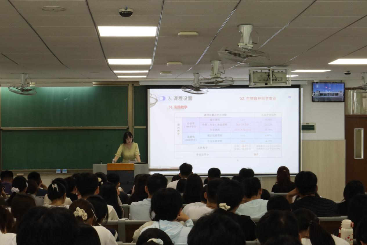 刘妍玲代表学院全体师生对2025级新同学的到来表示热烈欢迎,并依次介绍了学院领导老师、教师团队等情况。副院长谭玲玲从学院历史沿革、师资力量、学科建设、科研平台及人才培养成果等方面,为新生们全面介绍了学院的整体情况。她详细讲解了学院在生命科学领域的特色优势与发展规划,让新生们对未来的学习环境与成长路径有了更清晰的认知,进一步增强了新生对学院的认同感与归属感。
